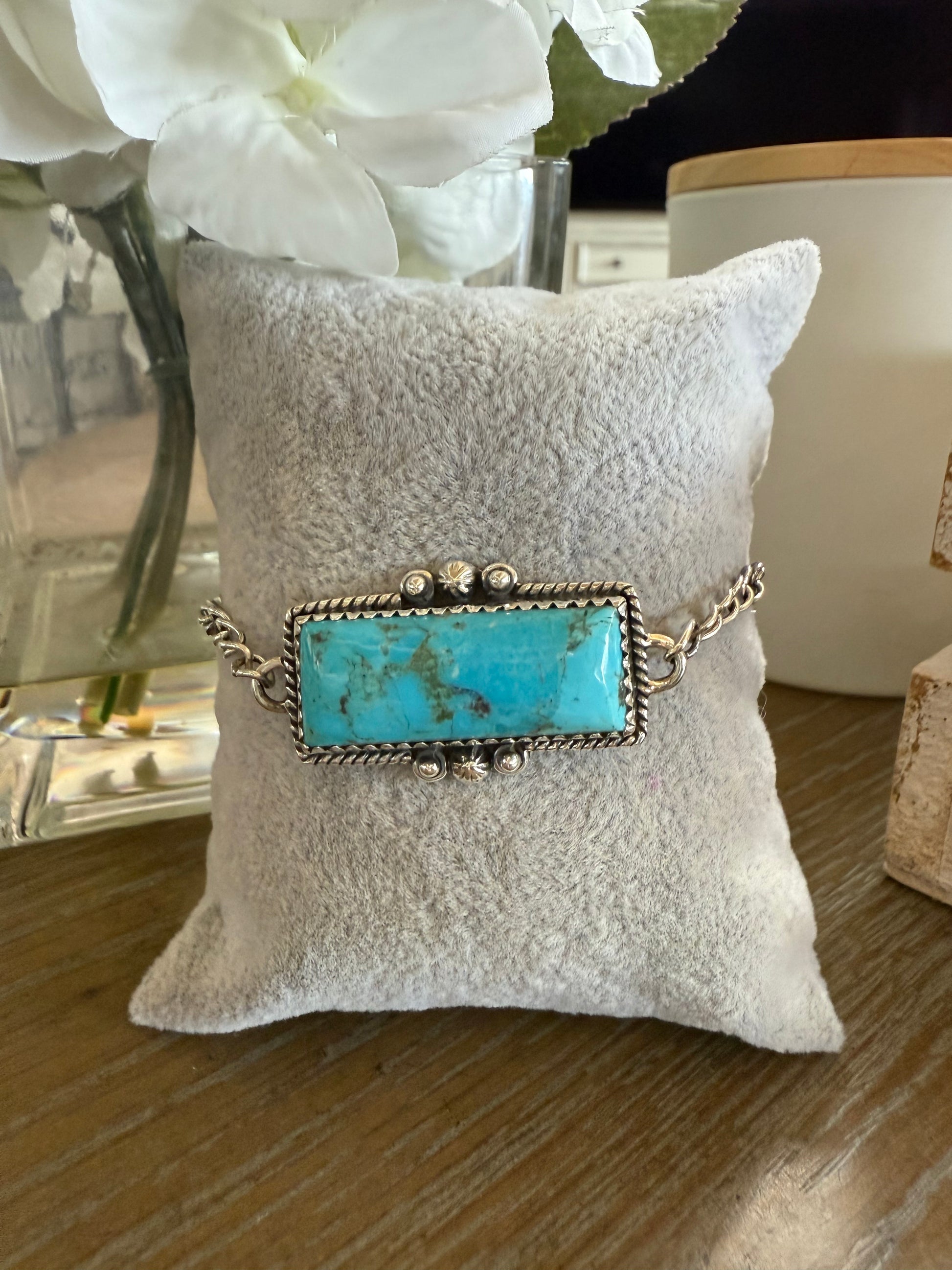Kingman Turquoise - Gorgeous .925 Sterling Silver Rectangle Bracelet.
