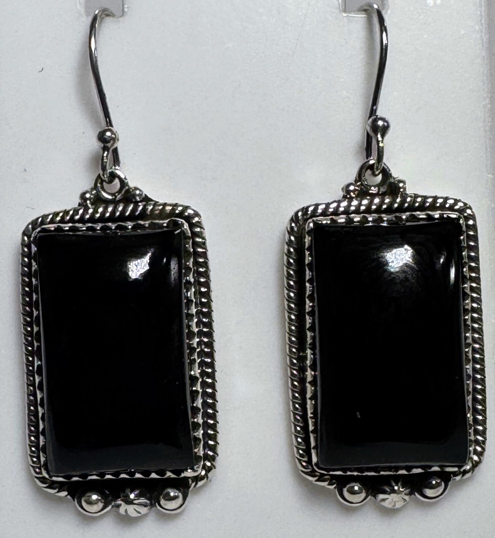 Earrings, Rectangle in Black Onyx .925 Sterling Silver