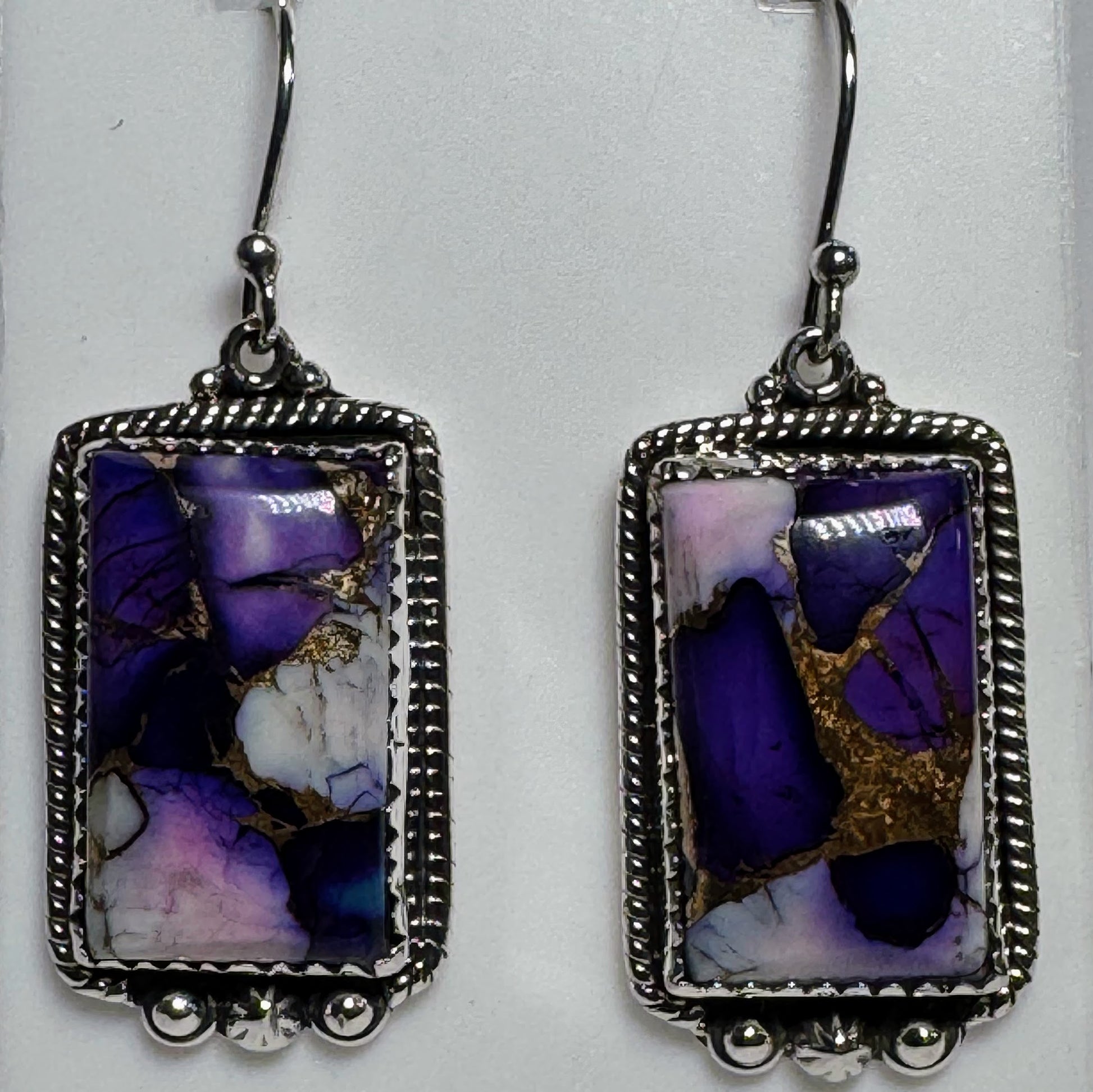 Earrings, Rectangle in Blue Purple Copper Turquoise .925 Sterling Silver