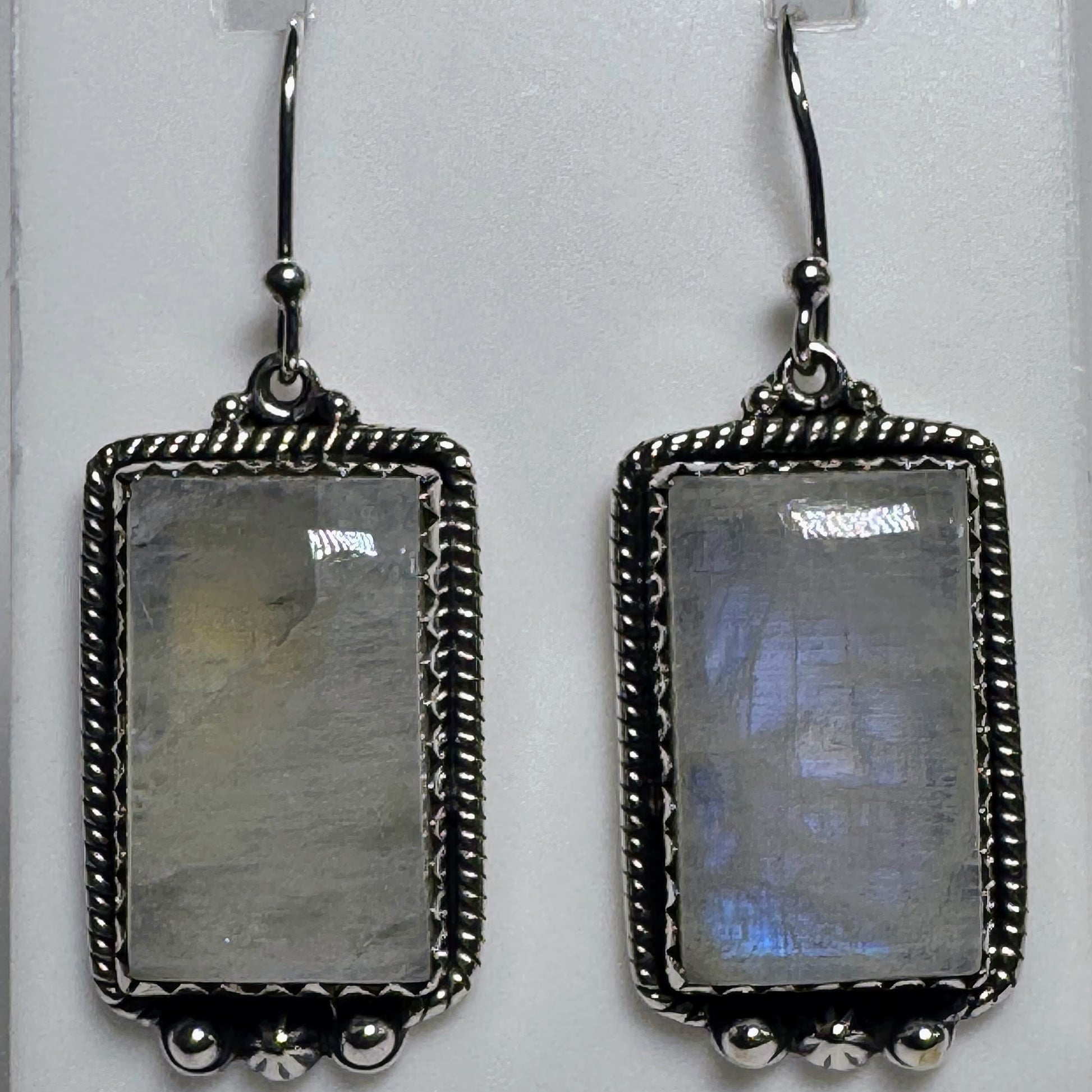 Rainbow Moonstone - Gorgeous .925 Sterling Silver Rectangle Earrings.