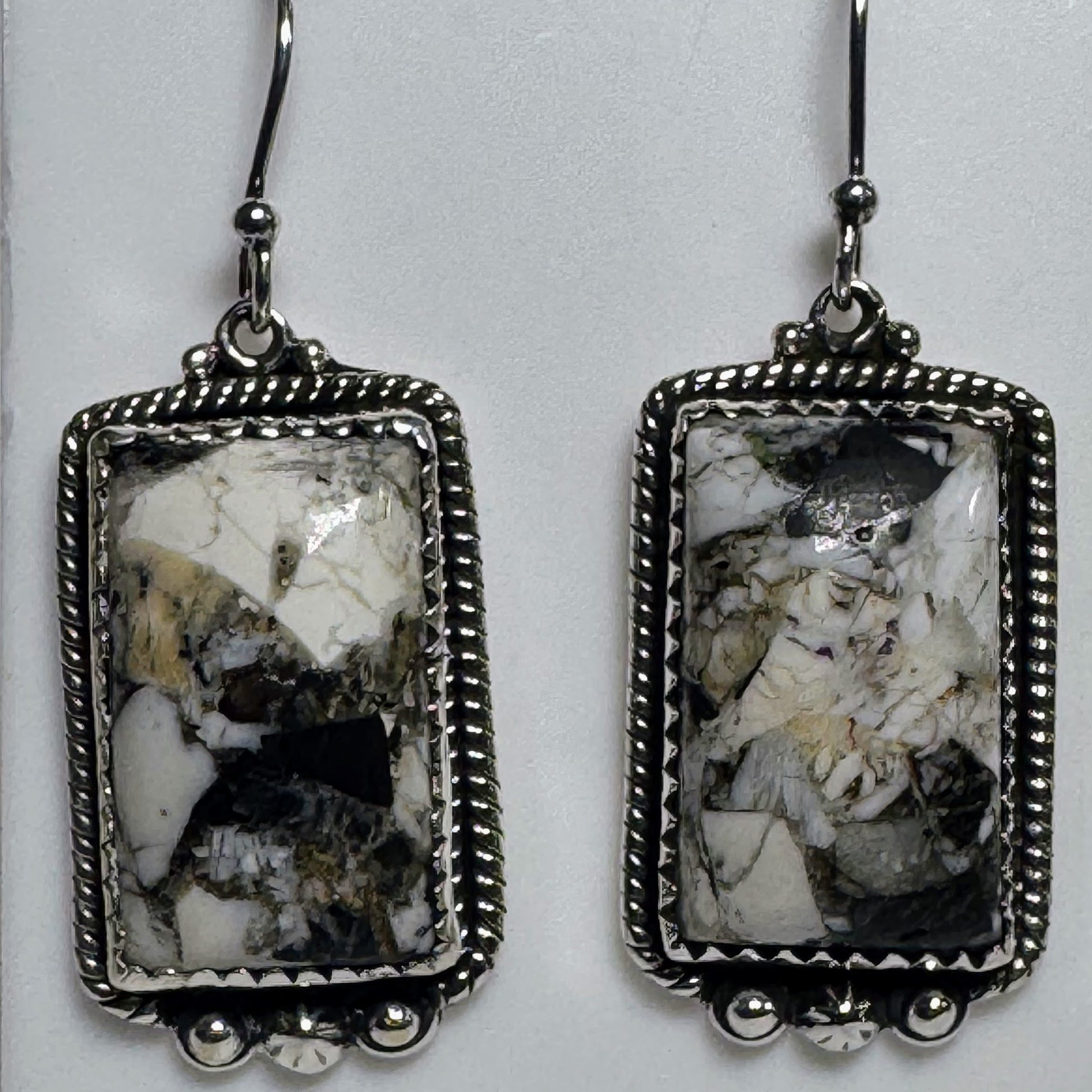 Earrings, Rectangle in White Buffalo Turquoise .925 Sterling Silver