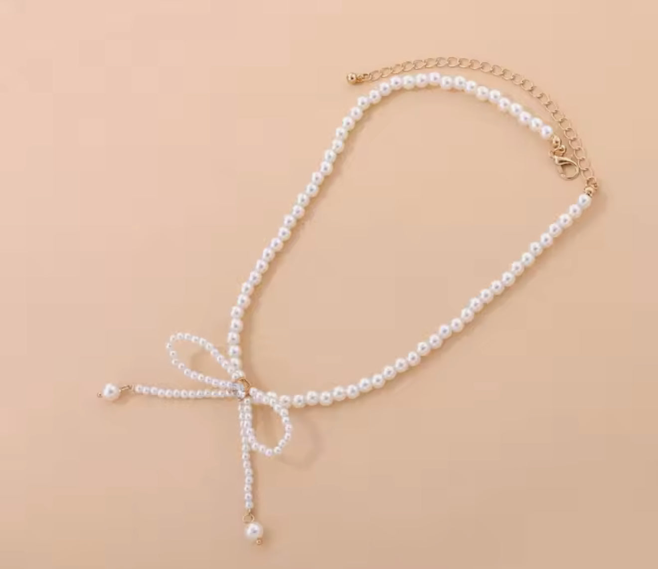Necklace, Bow Pearl Zircon Choker Necklace Bowknot Tassel