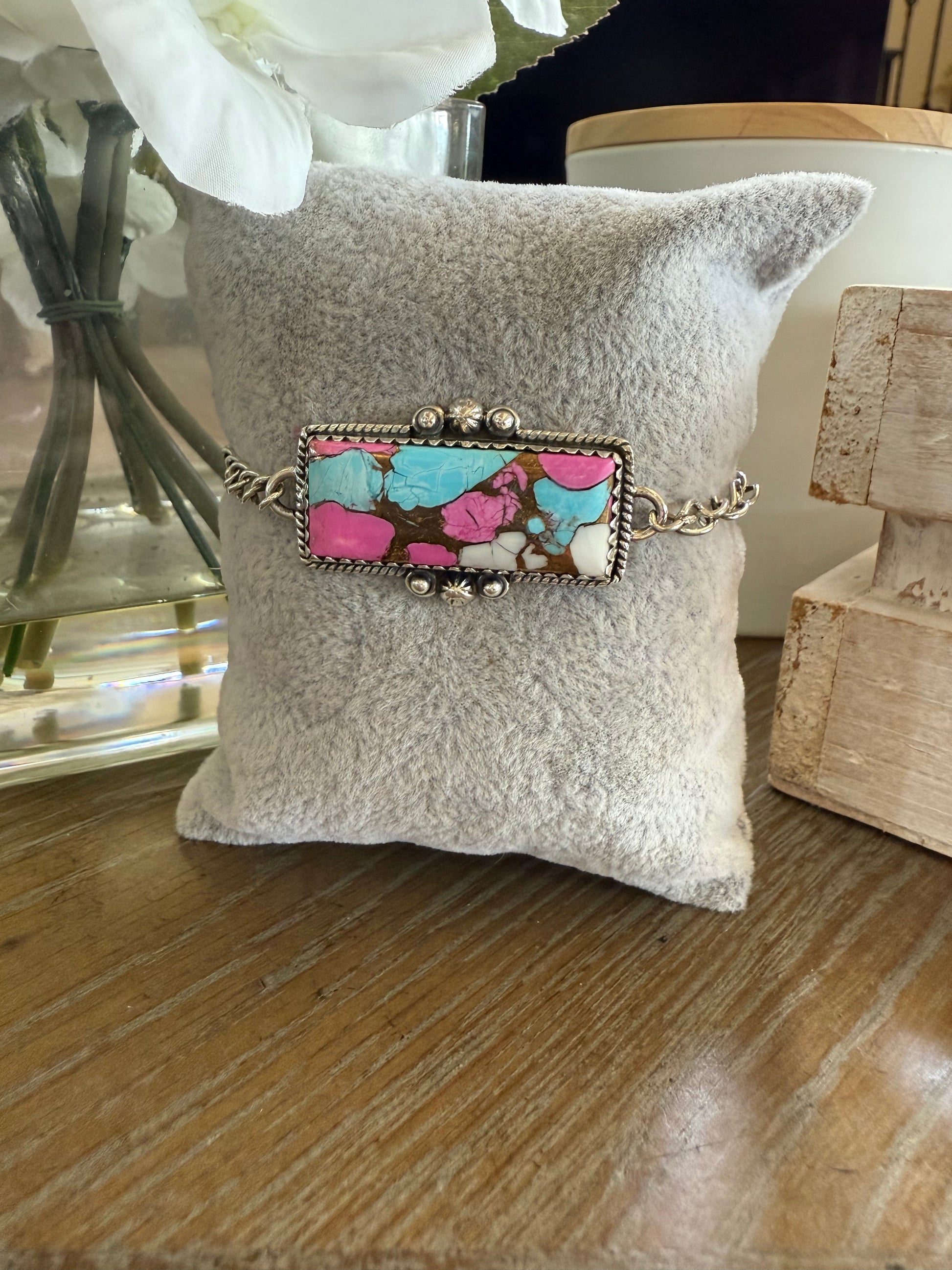 Cotton Candy - Gorgeous .925 Sterling Silver Rectangle Bracelet.