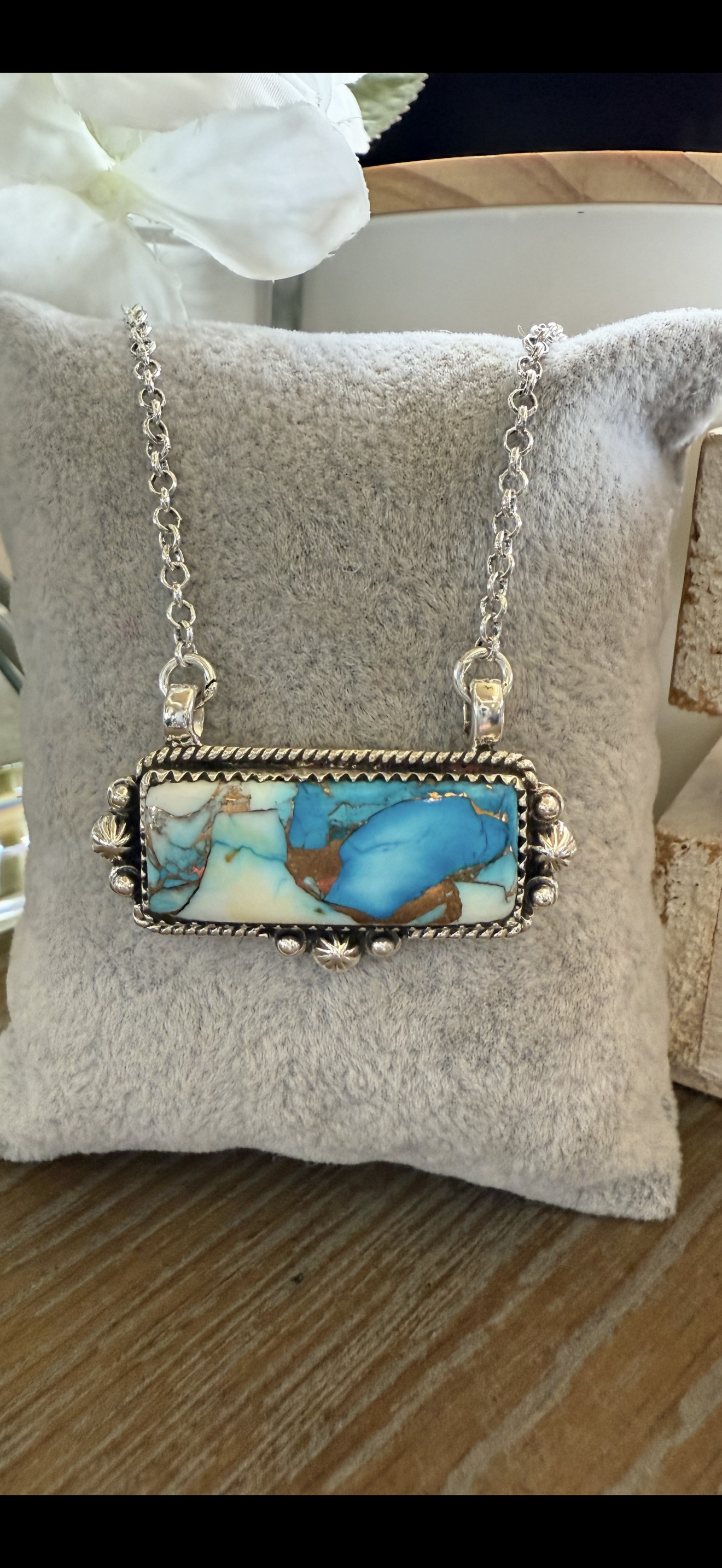 Necklace, Rectangle in Kingman Ice Dahlia .925 Sterling Silver