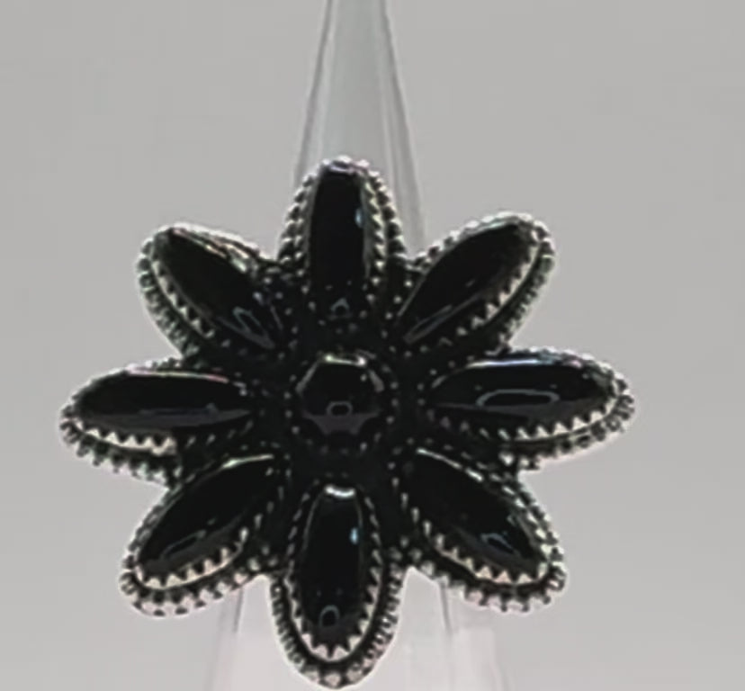 Gorgeous .925 Sterling Silver Black Onyx Flower Statement Ring.