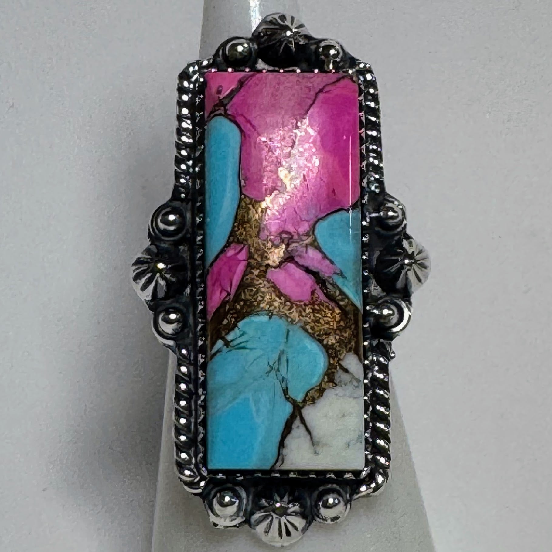 Cotton Candy - Gorgeous .925 Sterling Silver Rectangle Statement Ring.