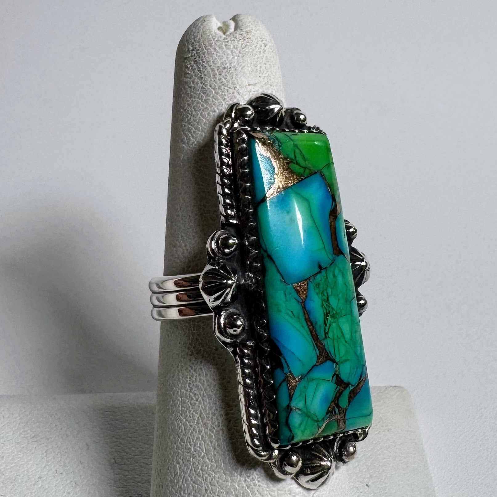 This ring is custom made for Grace, Glitz and Glam. The stone coloration will vary from ring to ring, stone to stone.