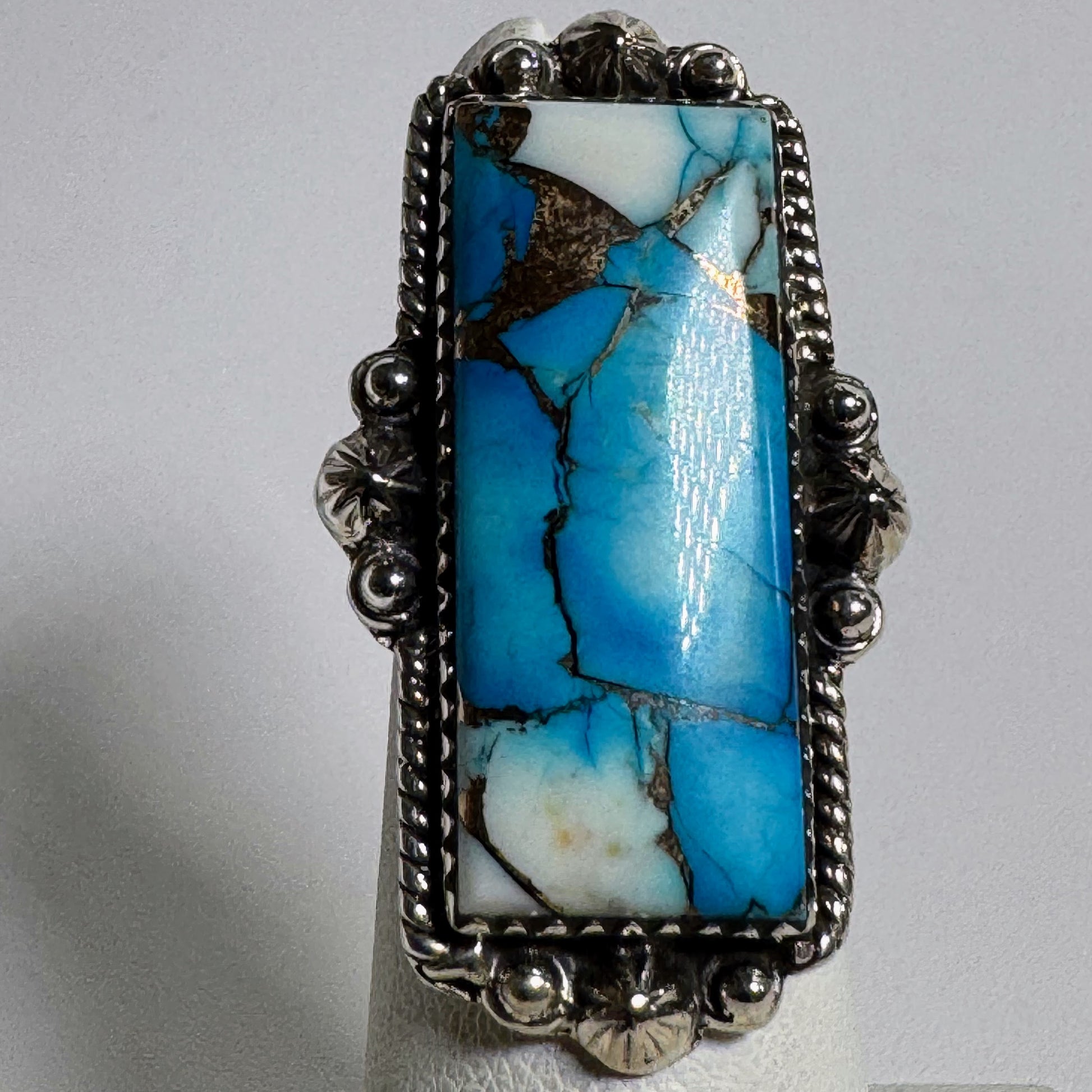 Kingman Ice Dahlia - Gorgeous .925 Sterling Silver Rectangle Statement Ring.